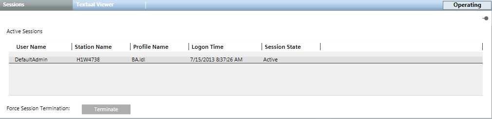 2. All active sessions display with User Name, Station Name, Profile Name, Logon Time, and Session State.