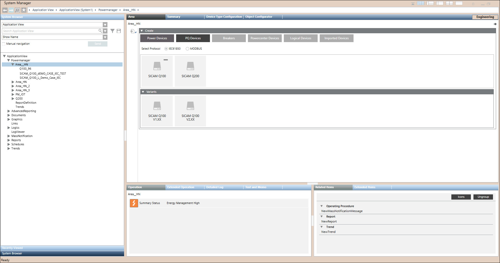1. In the System Browser, select ApplicationView > Powermanager > [Area].