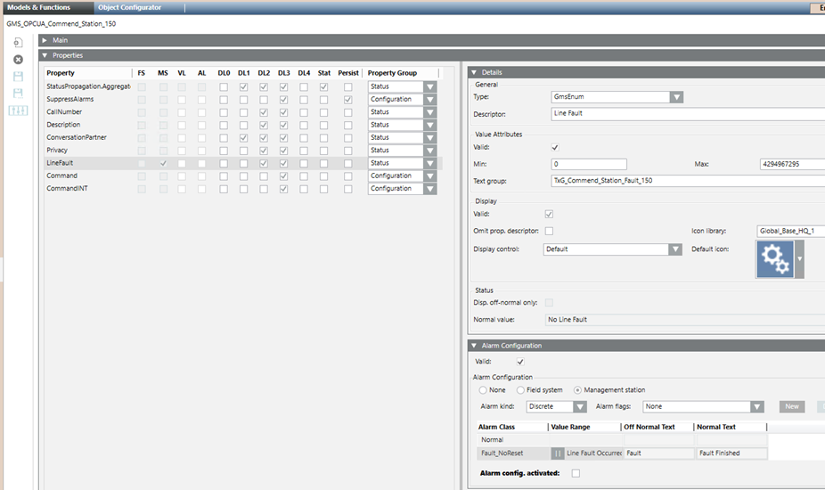 6. (Optional) You can use the MS Alarms preset configuration found in the Object Model.