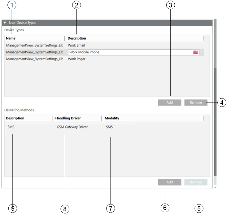 Displays the description of the user device type.