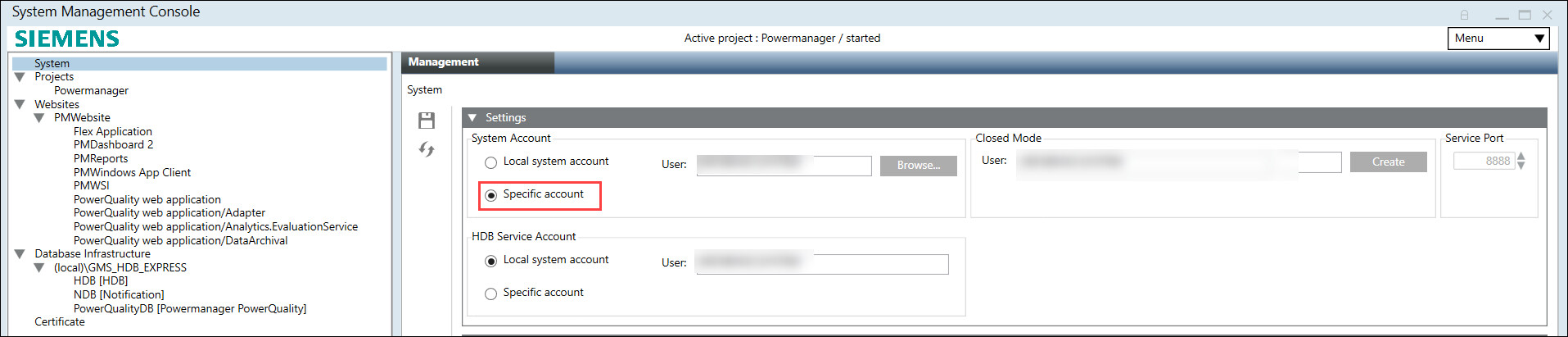 - Navigate to Services expander and select Siemens GMS PQDB Service.