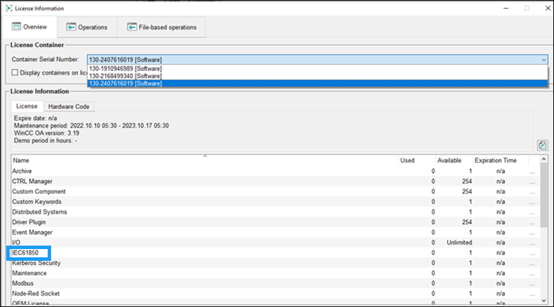 • Find out which container number has the entry for IEC61850. This entry is the key. The key in the following image is 130-2407616019